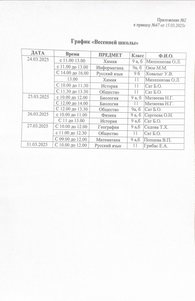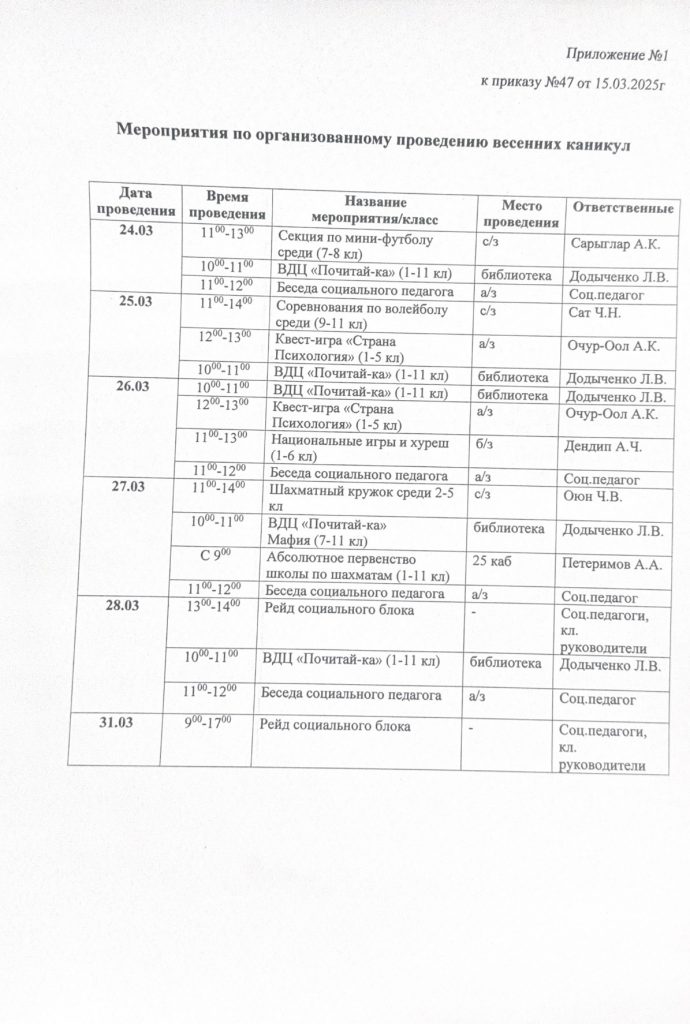 Без рубрики Мероприятия по организованному проведению весенних каникул. График «Весенней школы». 2025. 20.03.2025 /