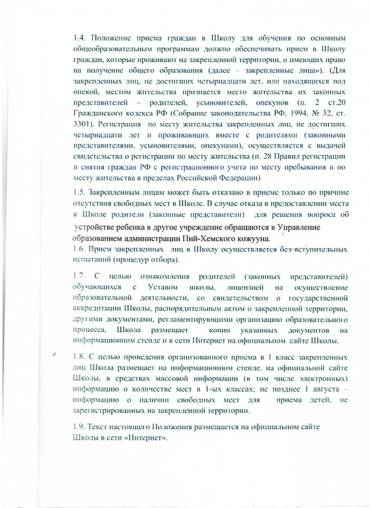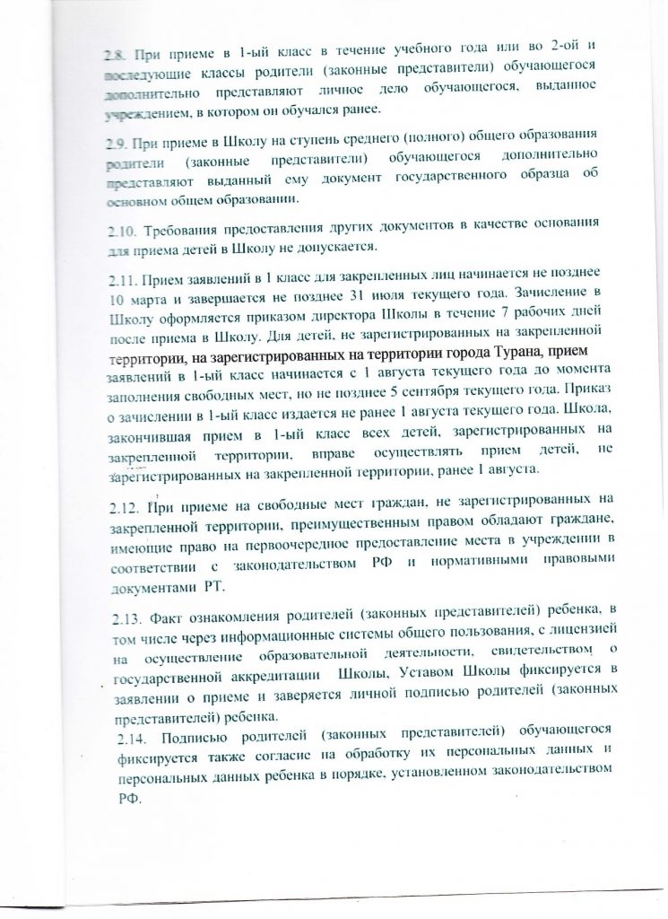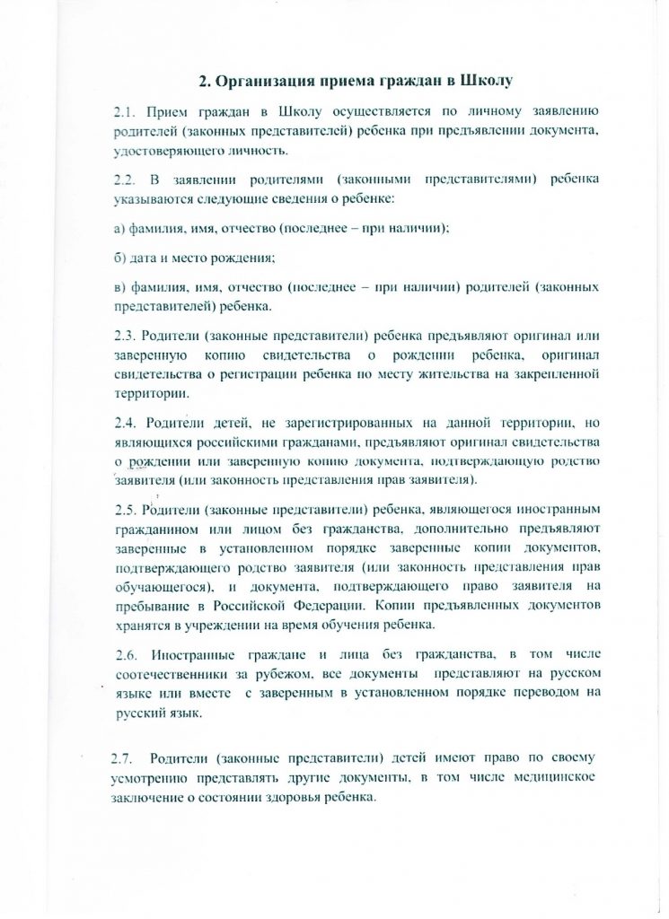 • Приём в 1 класс